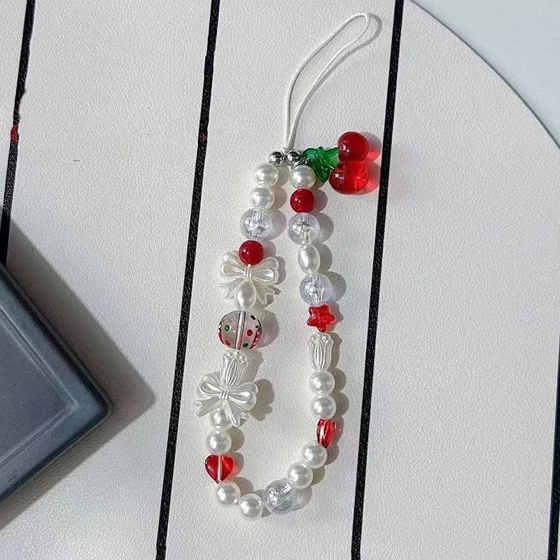 Red Cherry Bow Pearl Phone Charm